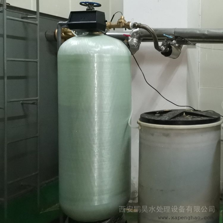 水的硬度主要由其中的阳离子:钙 ( Ca 2+ )、镁(Mg 2+ )离子构成的。当含有硬度离子的原水通过交换器内树脂层时,水中的钙、镁离子被树脂吸附,同时交换释放出钠离子。这样从交换器内流出的水就是去掉了硬度离子的软化水,当吸附钙、镁离子的树脂达到一定程度后,出水硬度增大,此时软水器自动进行失效树脂的再生工作,利用较高浓度的氯化钠溶液通过失效的树脂,使失效的树脂重新恢复至钠型树脂。系统是由树脂罐、盐罐、控制器组成的一体化设备。安装了美国FLECK公司集中控制阀,实现程序控制运行,自动再生;采用虹吸原理吸盐,自动注水化盐、配比浓度,无须盐泵、溶盐等附属设备。